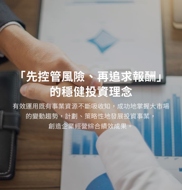 福林投資擁有一群陣容堅強之市場投資分析人員,於合理之風險控管下,精確掌握市場供需,審慎選擇投資組合,以獲取最佳之資本報酬,為資金尋求最佳的投資管道。投資觸角廣及醫療、食品、傳統製造、建設及高科技產業等各類產業。